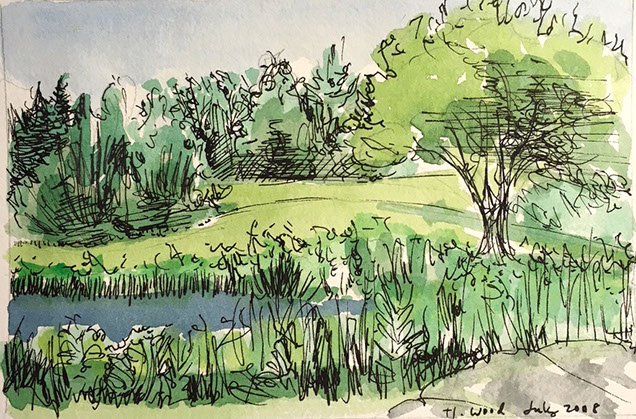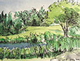 One of my chief joys is to settle into a place of beauty and paint what I see and feel. I use oils and acrylics on board, canvas, and paper, as well as gouache, watercolor, and ink. I also do large scale set paintings for theater.